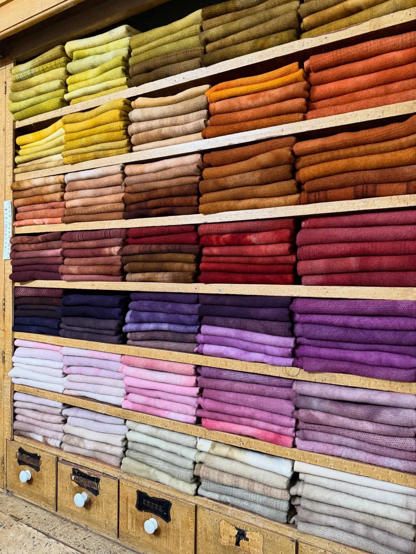 We are located in an old general store built in 1860. The original cabinetry can be found stuffed full of woolens, threads, yarn, and other items for creating. We specialize in rug hooking, punch needle and wool appliquΓ©, but also carry a great selection of vintage items, antiques, Rifle Paper Co. stationary and other gifts. Visit our classes page or calendar to find upcoming events and classes.